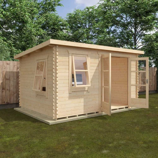 L-Shaped Log Cabin - Tounge & Groove, Apex Roof, Garden Office, Double Doors - 44 mm thickness