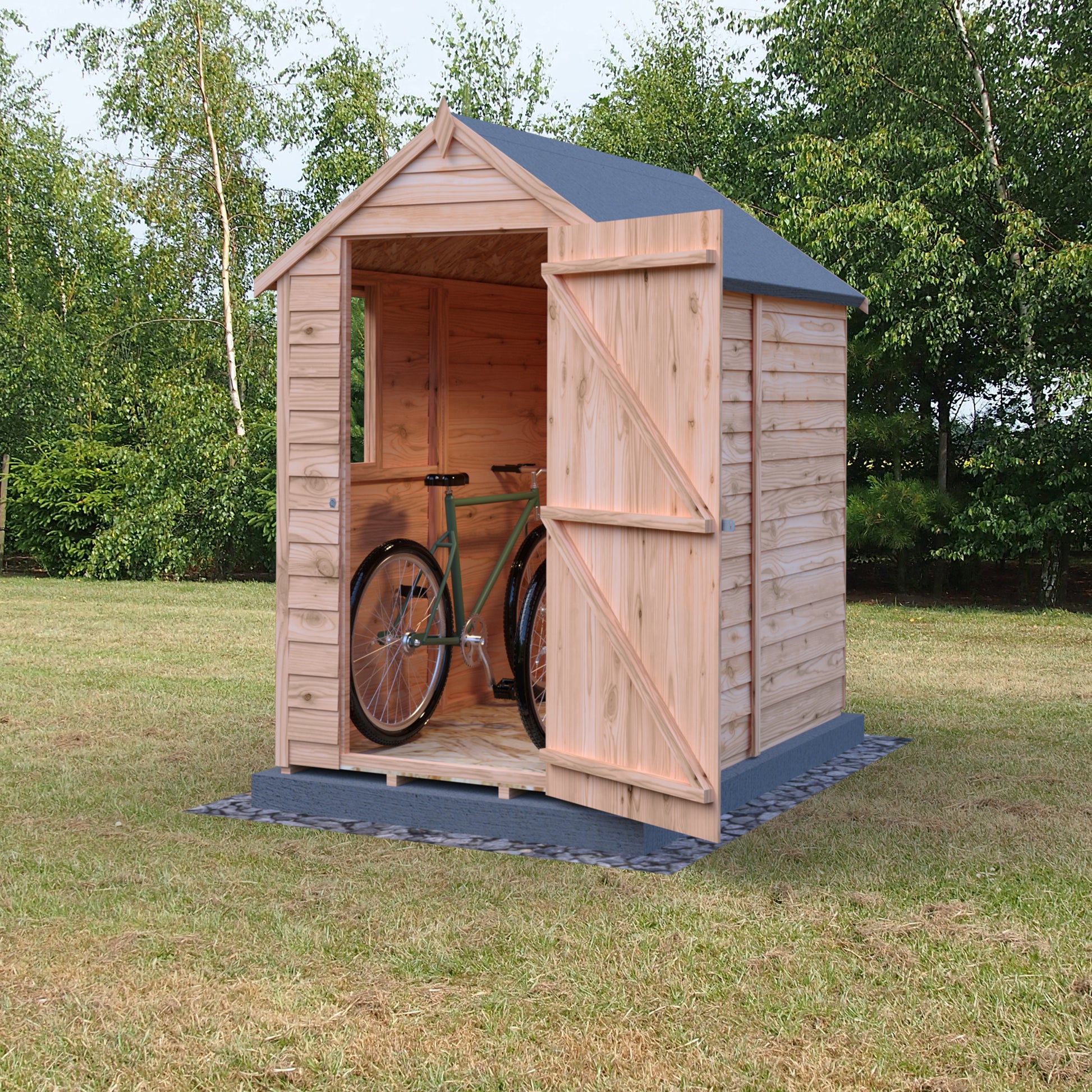 Part of our Garden Value range of overlap sheds. This compact shed is manufactured from high grade, slow grown, FSC approved, European pine overlap cladding boards over 34mm square framing with OSB roof and floor. Perfect for organising smaller gardens. Apex Roof for extra headroom.
