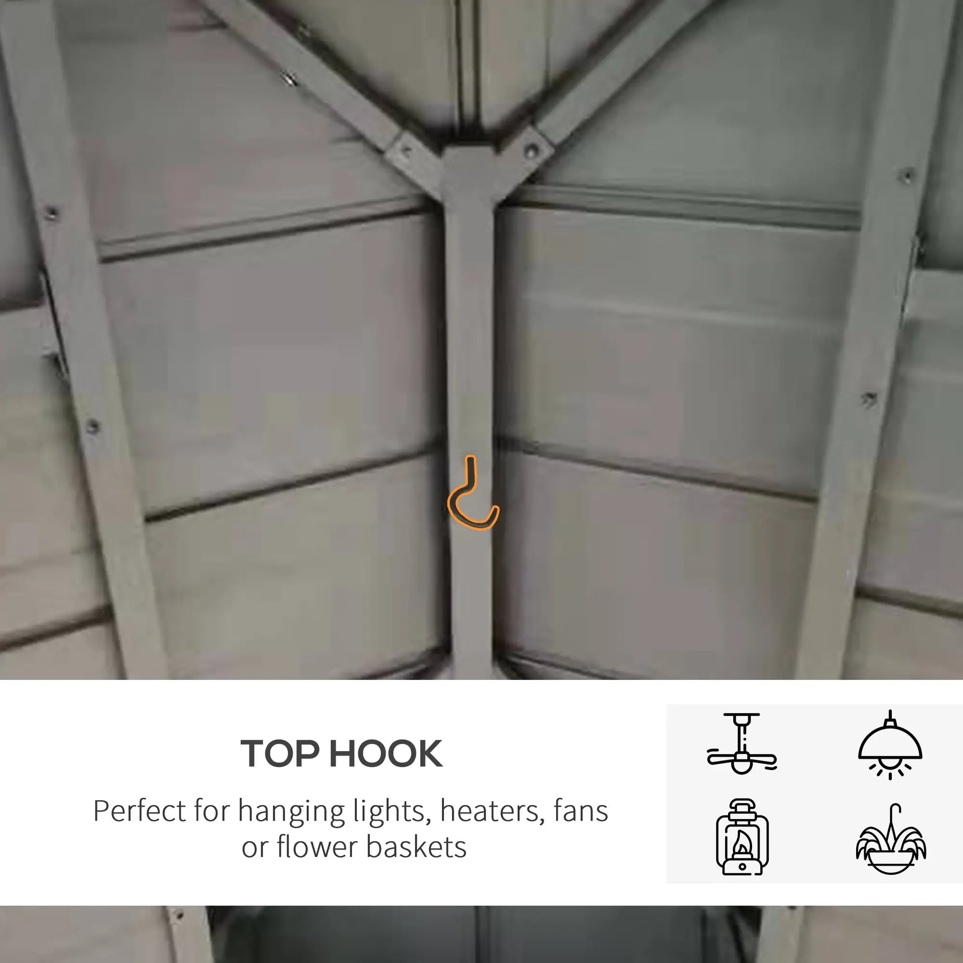 CEILING HOOK: An easy way to hook a light for evening use - or even adding a flower basket for a touch nature inside when using this wooden gazebo with roof. Never leave naked flames unattended.